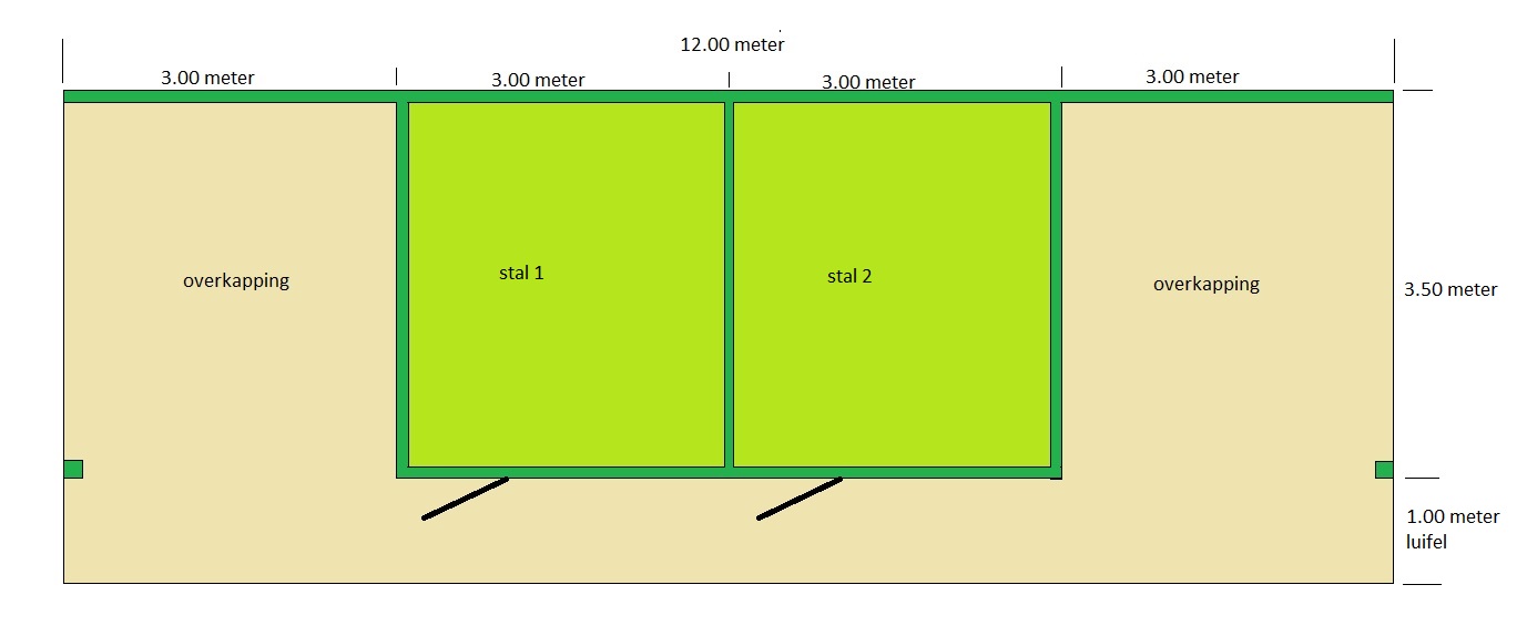 Klik hier om meer informatie of een offerte aan te vragen voor "2 paardenstallen met 2 x overkapping model Kraanven".