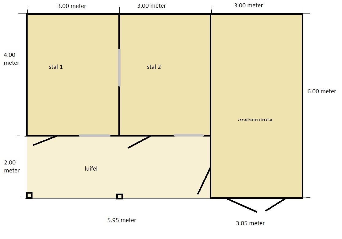 2 stallen met opslagruimte en luifel 9.00 x 6.00 meter model Ooltgensplaat