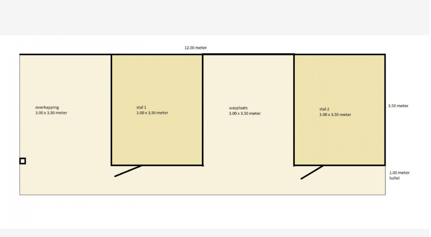2 stallen met wasplaats en overkapping 12.00 x 3.50 meter met 1.00 meter luifel