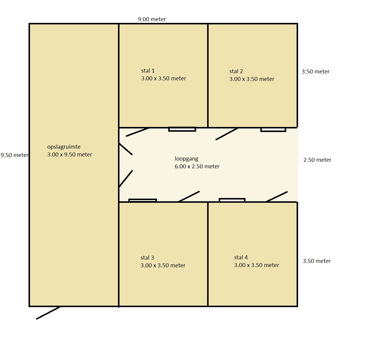 4 paardenstallen met opslagruimte model Oostvorne 9.00 x 9.50 meter