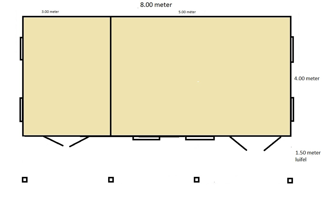 Betonvloer met bewapening en vorstrand en betonpoeren voor de palen 8.00 x 4.00 meter (prijs op aanvraag)
