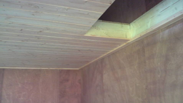 -plafond tuinkamer bekleed met Douglas sidings planken
