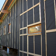 -wanden en dak voorzien met spinvlies (dampopen folie)